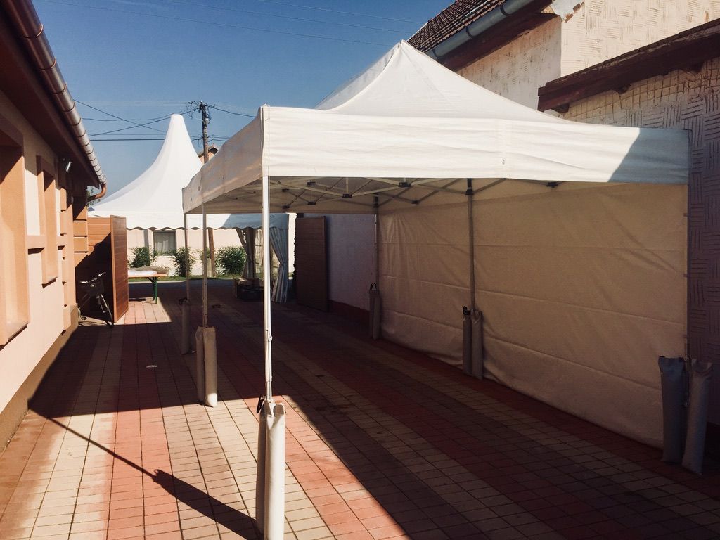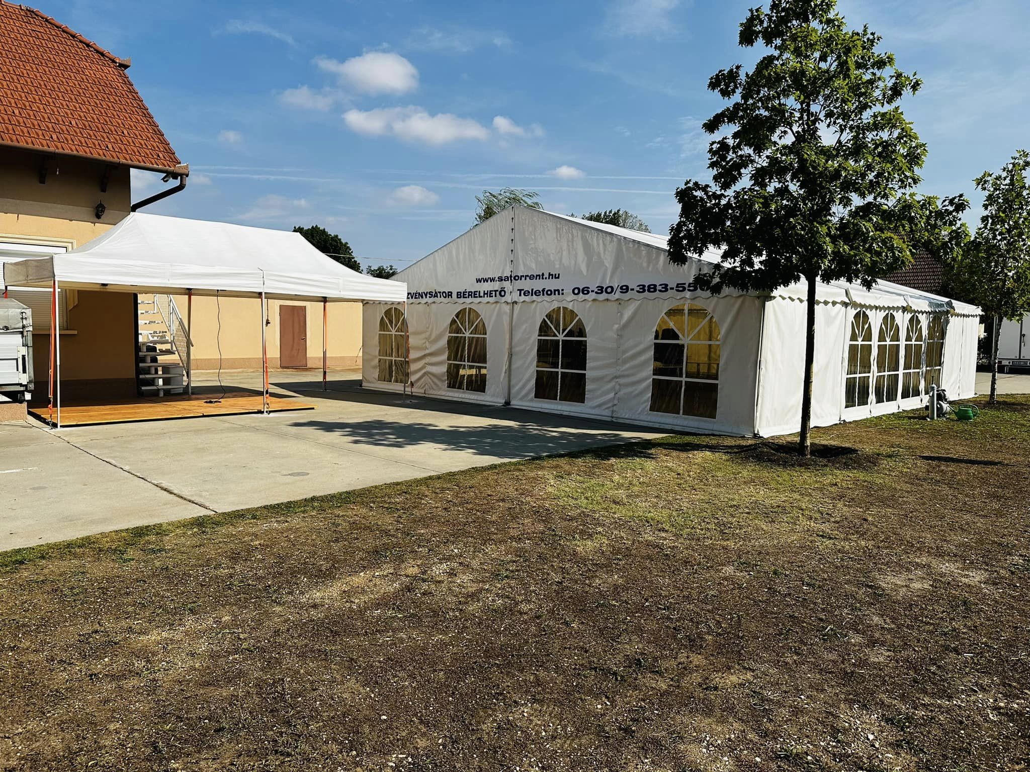 Tálalósátornak, cateringes- vagy technikai sátornak kínáljuk a könnyűfém szerkezetű, gyorsan egyszerűen felállítható 6 x 3 méteres méretű pavilonsátrainkat.