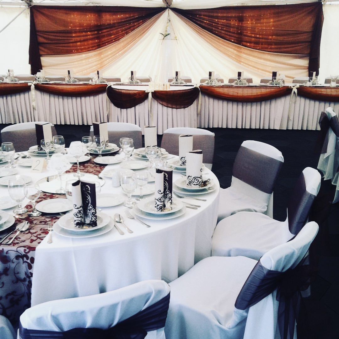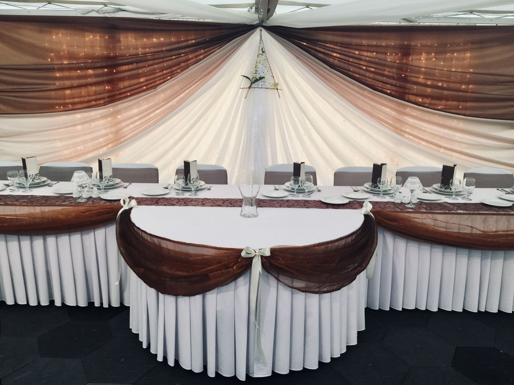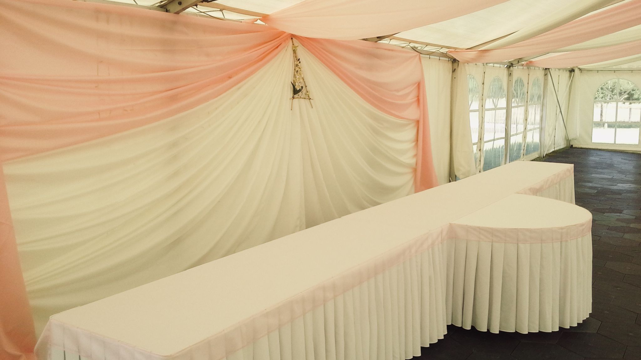 Asztalszoknyáinkkal elegánssá tehetők a főasztalok, tálalóasztalok.